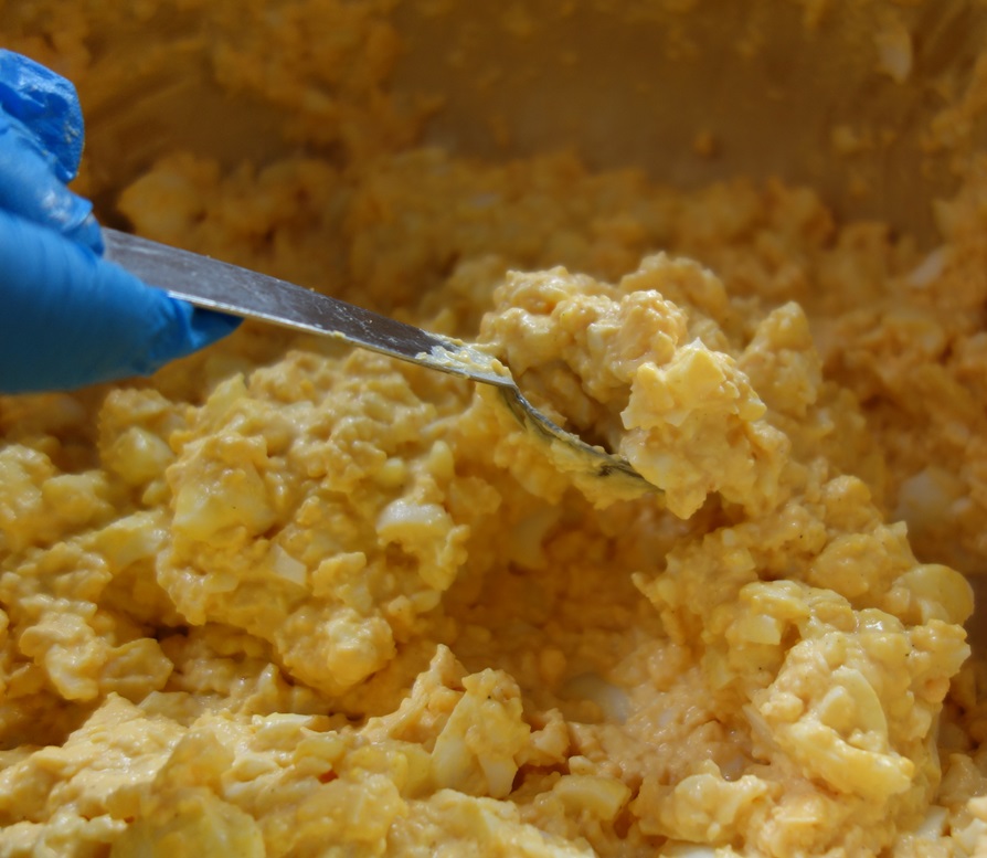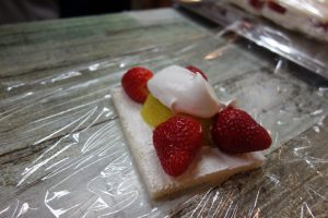 作り途中のフルーツサンドとたまごサンドです