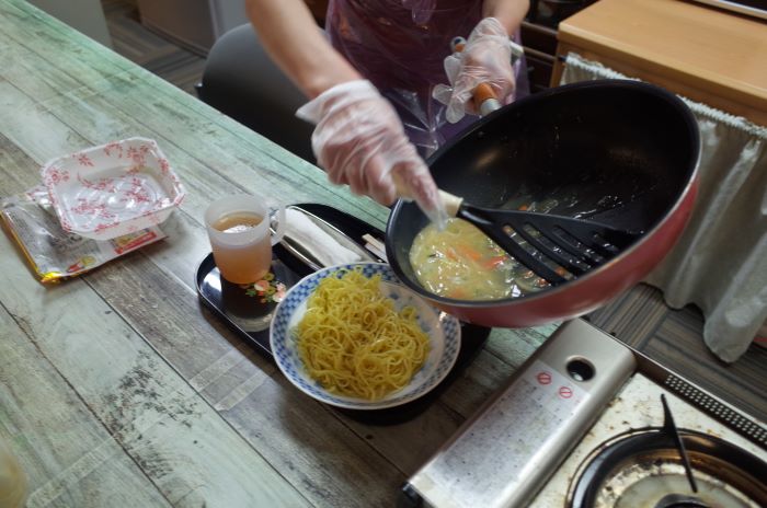 イカやエビは誤嚥のリスクが高いため取り除きました。