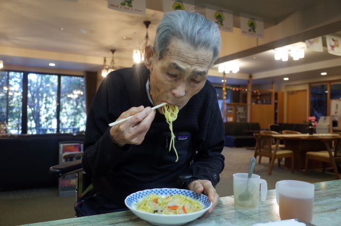 咀嚼・嚥下状態・むせ込みなどを評価しながら