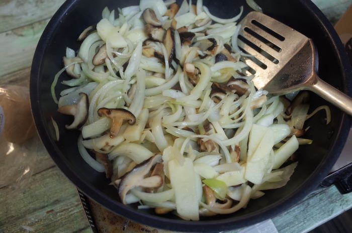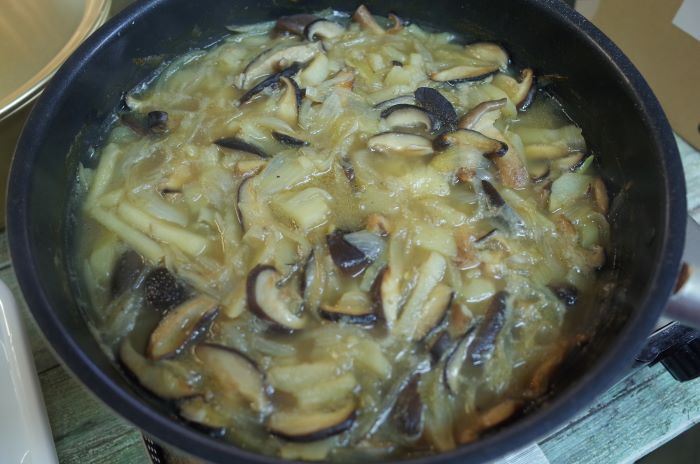 しいたけ、玉ねぎ、ジャガイモをバターで炒めて