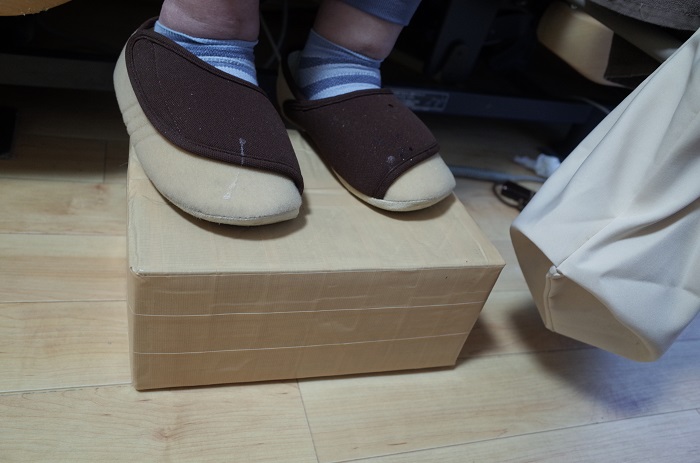 「僕の足の下にその箱を入れて欲しいんだ。」