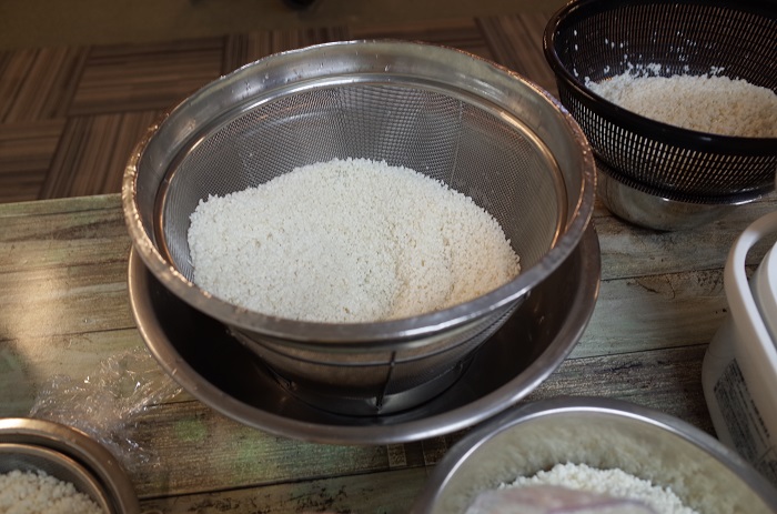 私は16合のもち米を一度に洗い浸水させました。