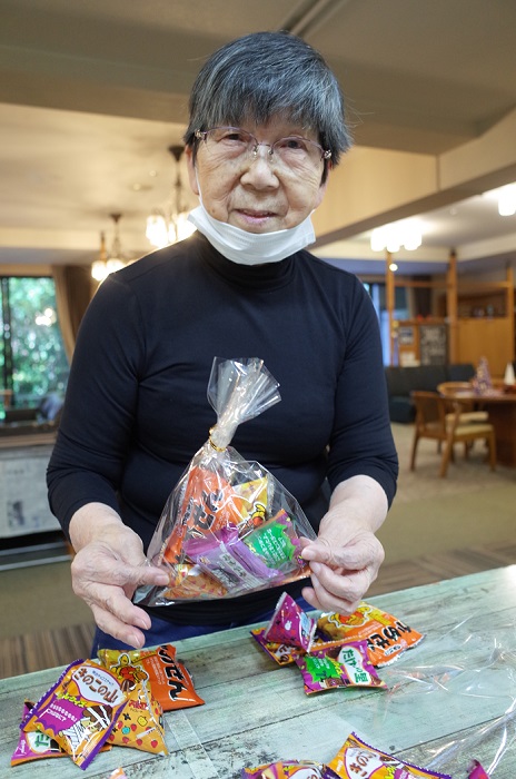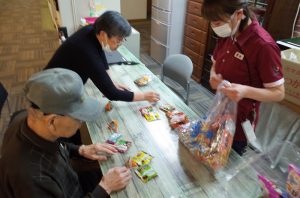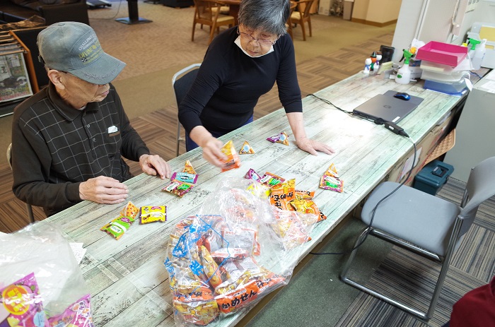 T様はお菓子の仕分けをしながら