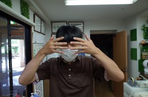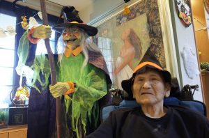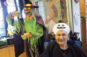N様も施設長と相談員にのせられてチョイ仮装してくれました。
