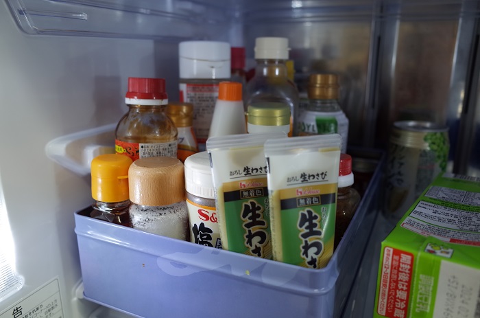 冷蔵庫の中は一般家庭に負けないくらい調味料が入っています。