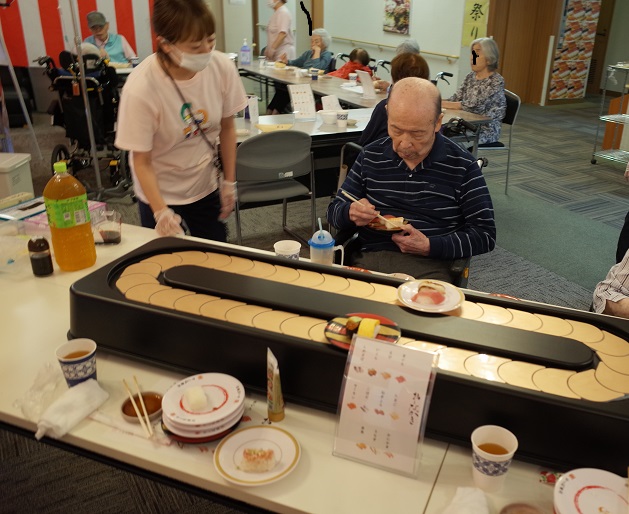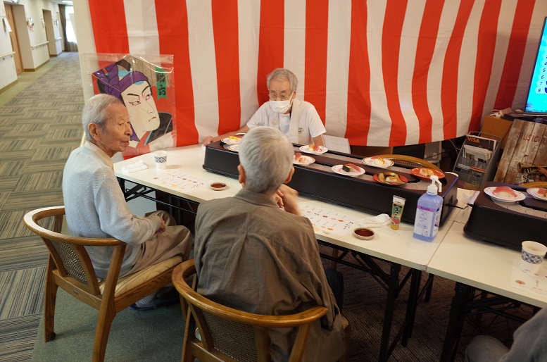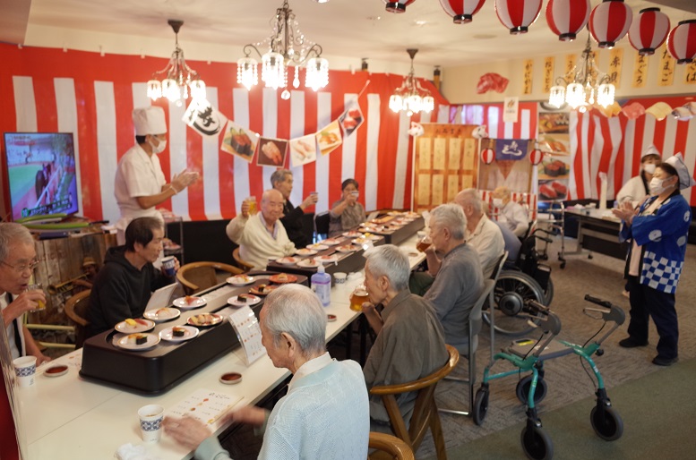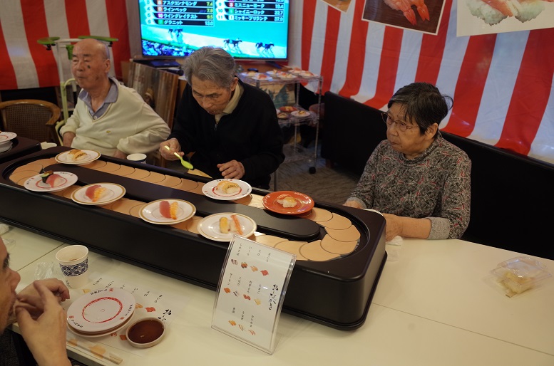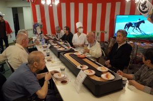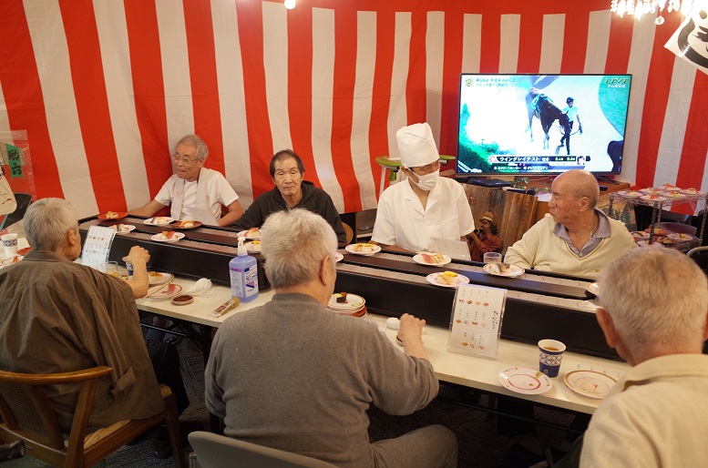 利用者様達から『競馬を見ながらお寿司を食べたい!』と希望があり