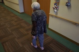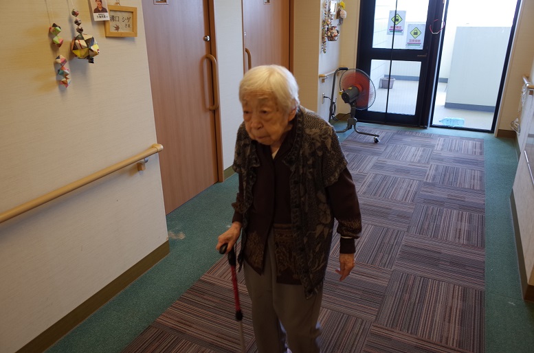 毎日、廊下を何往復を歩いて足腰を鍛えているS様。
