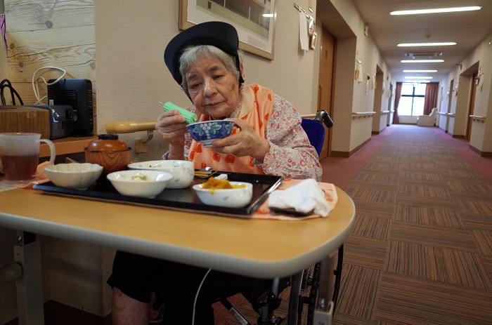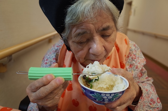 N様が可能な限りご自分の力でお食事を召し上がれるように。