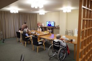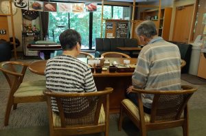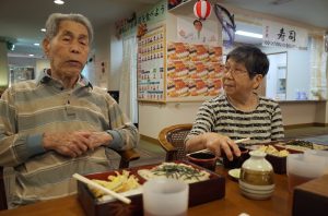 食後にゆっくりと利用者様同士で談話する利用者様や