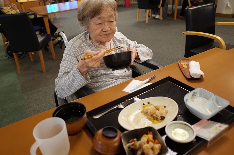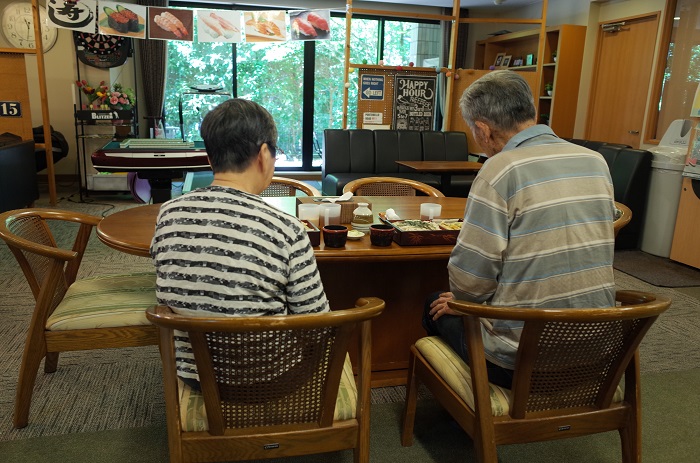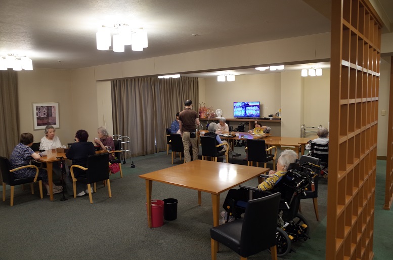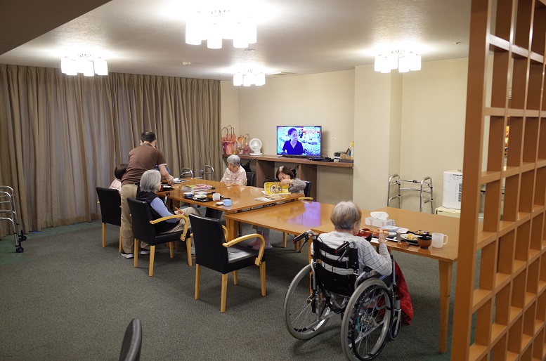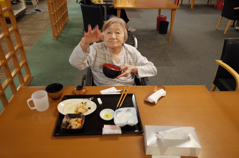 ご飯を食べ終わってお部屋に帰る利用者様や
