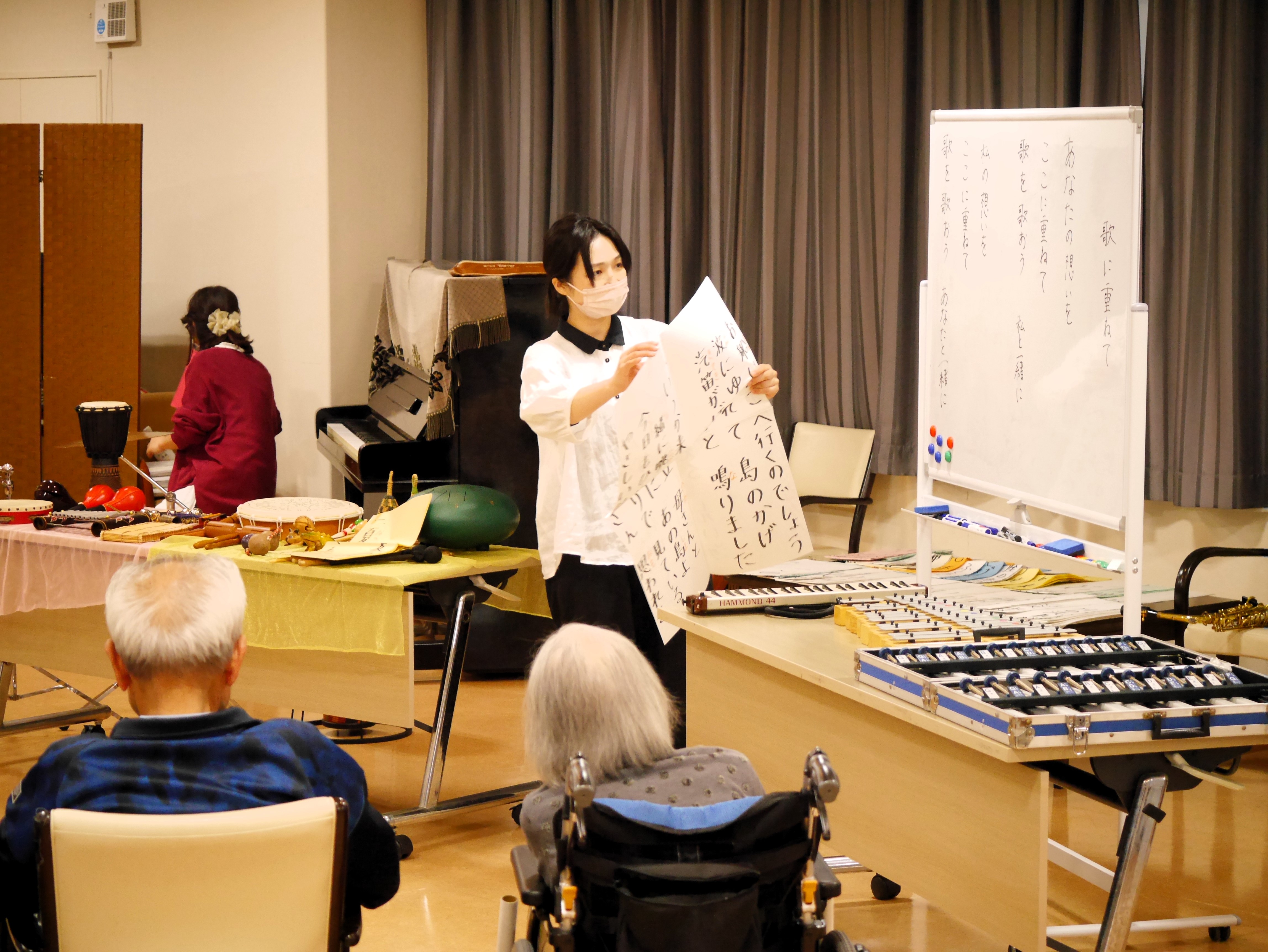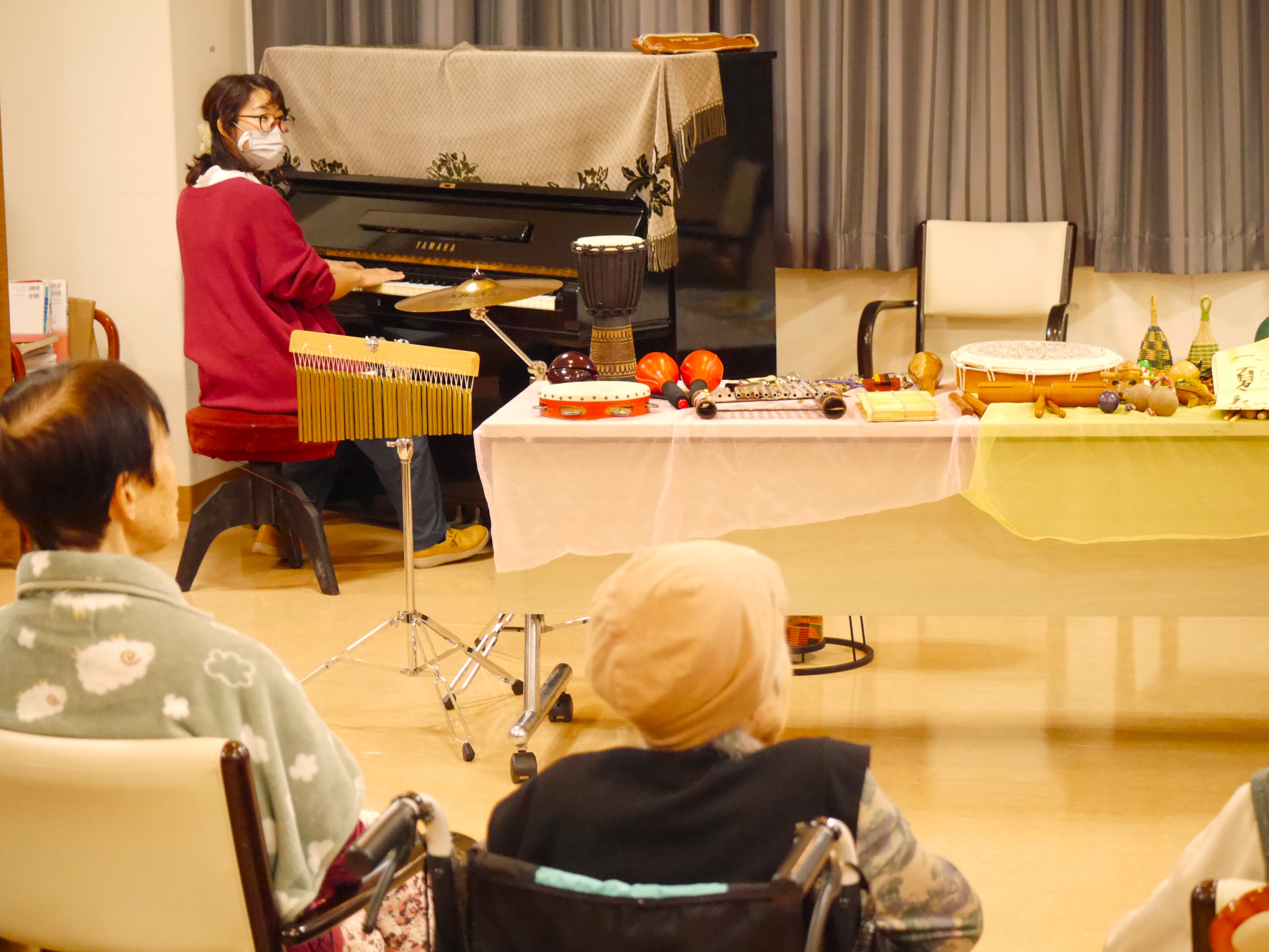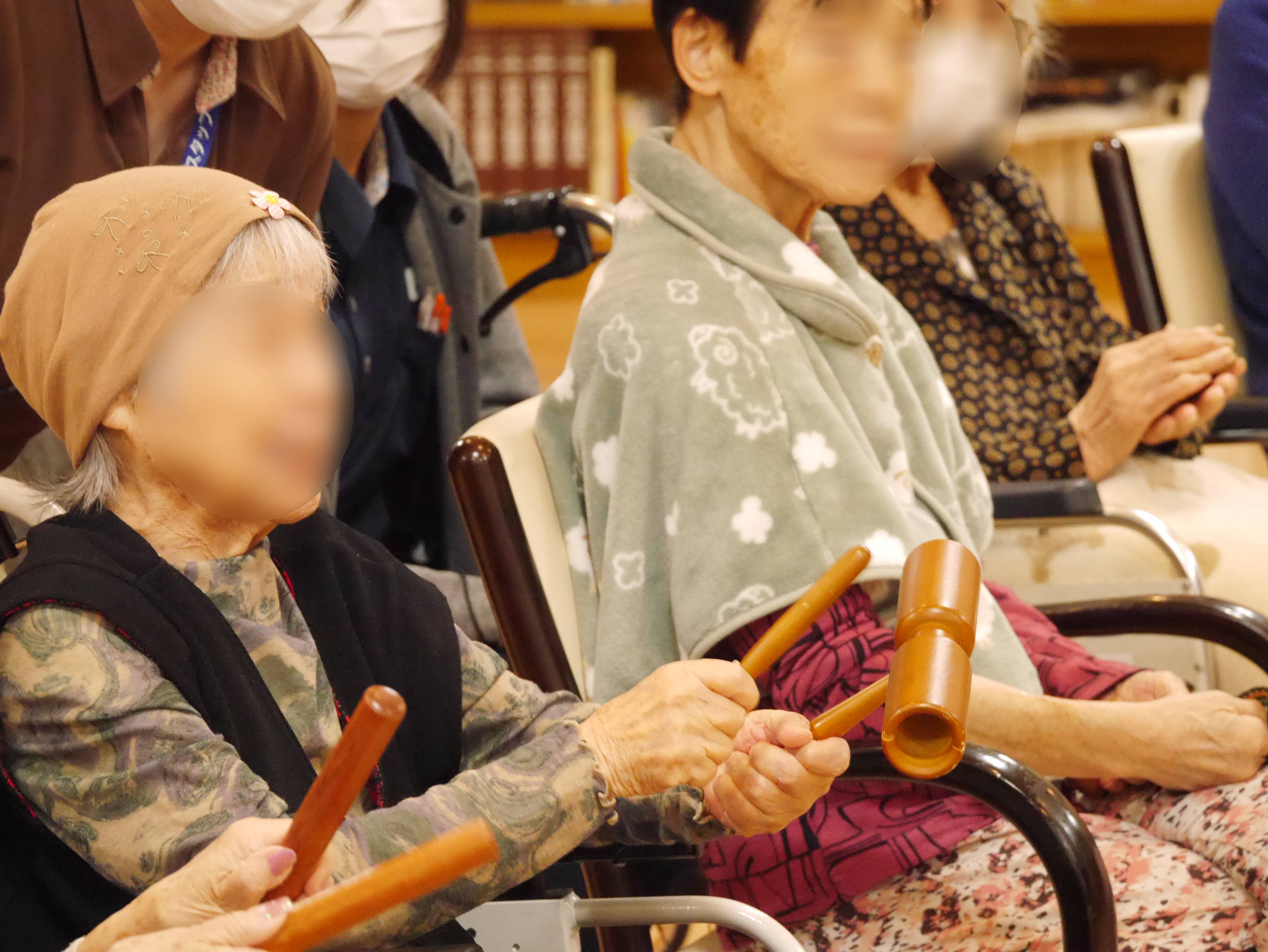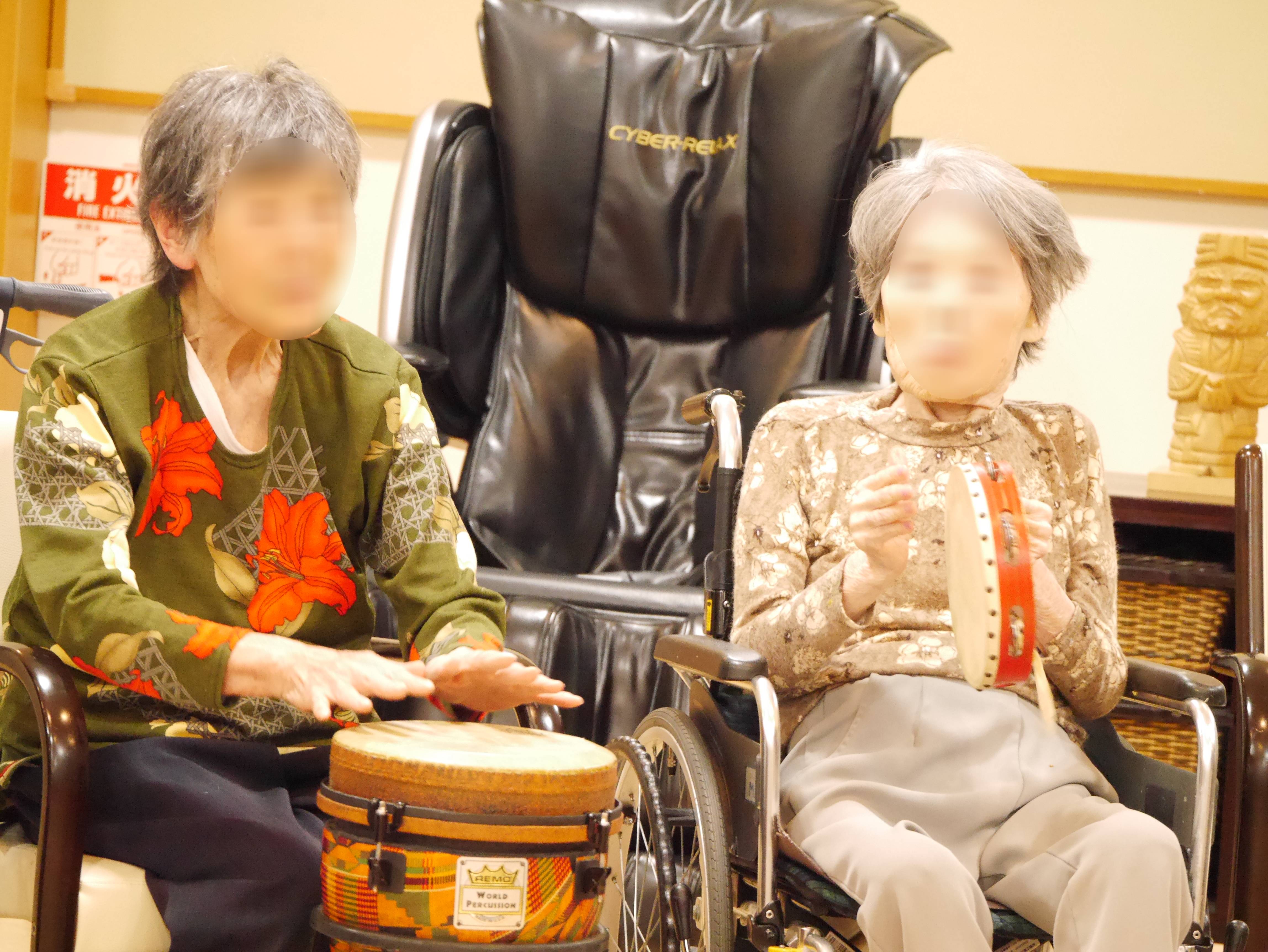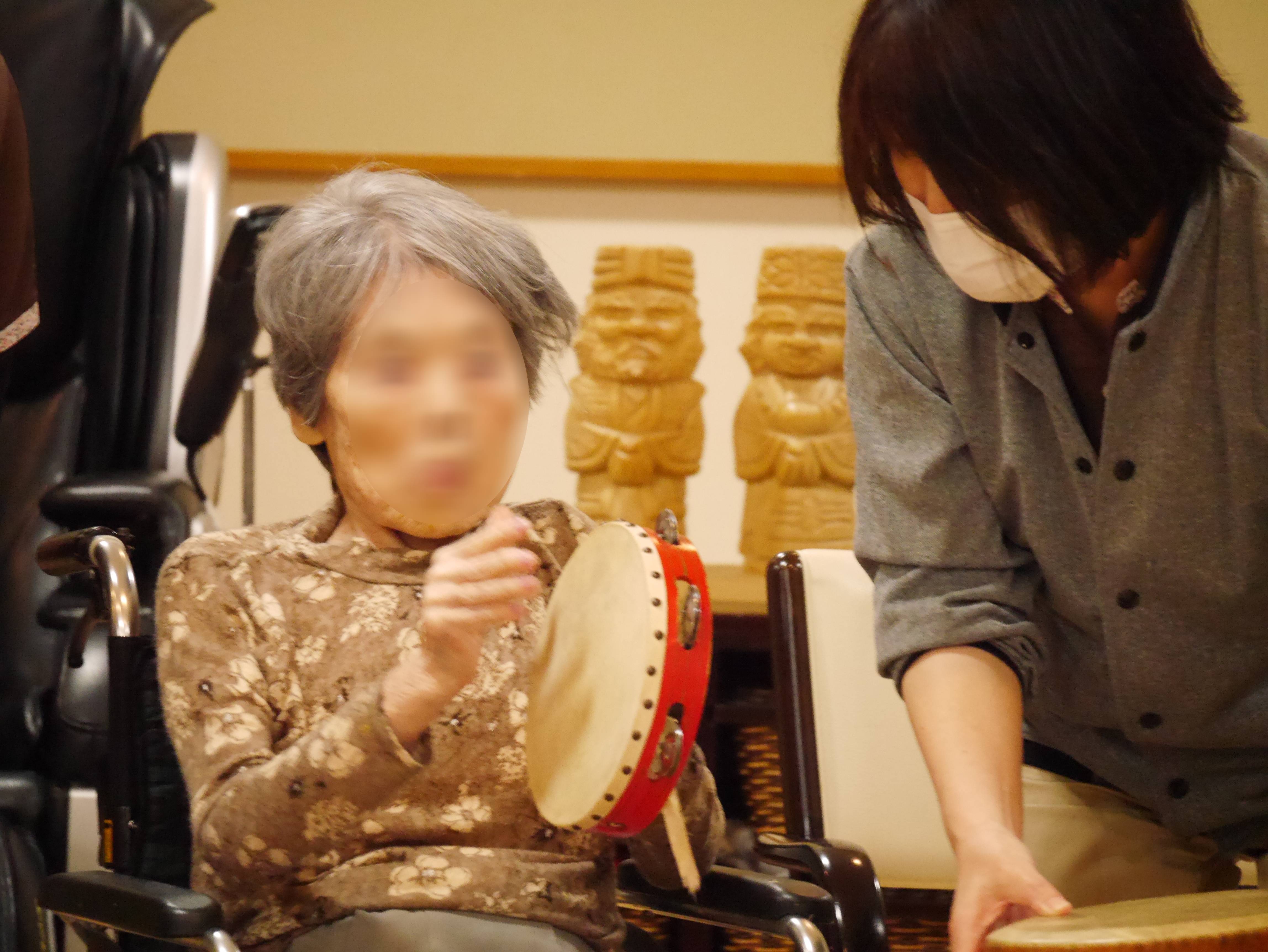 普段はあまり興味を示さない入居者様も興味津々で楽器に触れており、音楽療法の効果にスタッフもびっくりしました(⊙ˍ⊙)!!