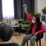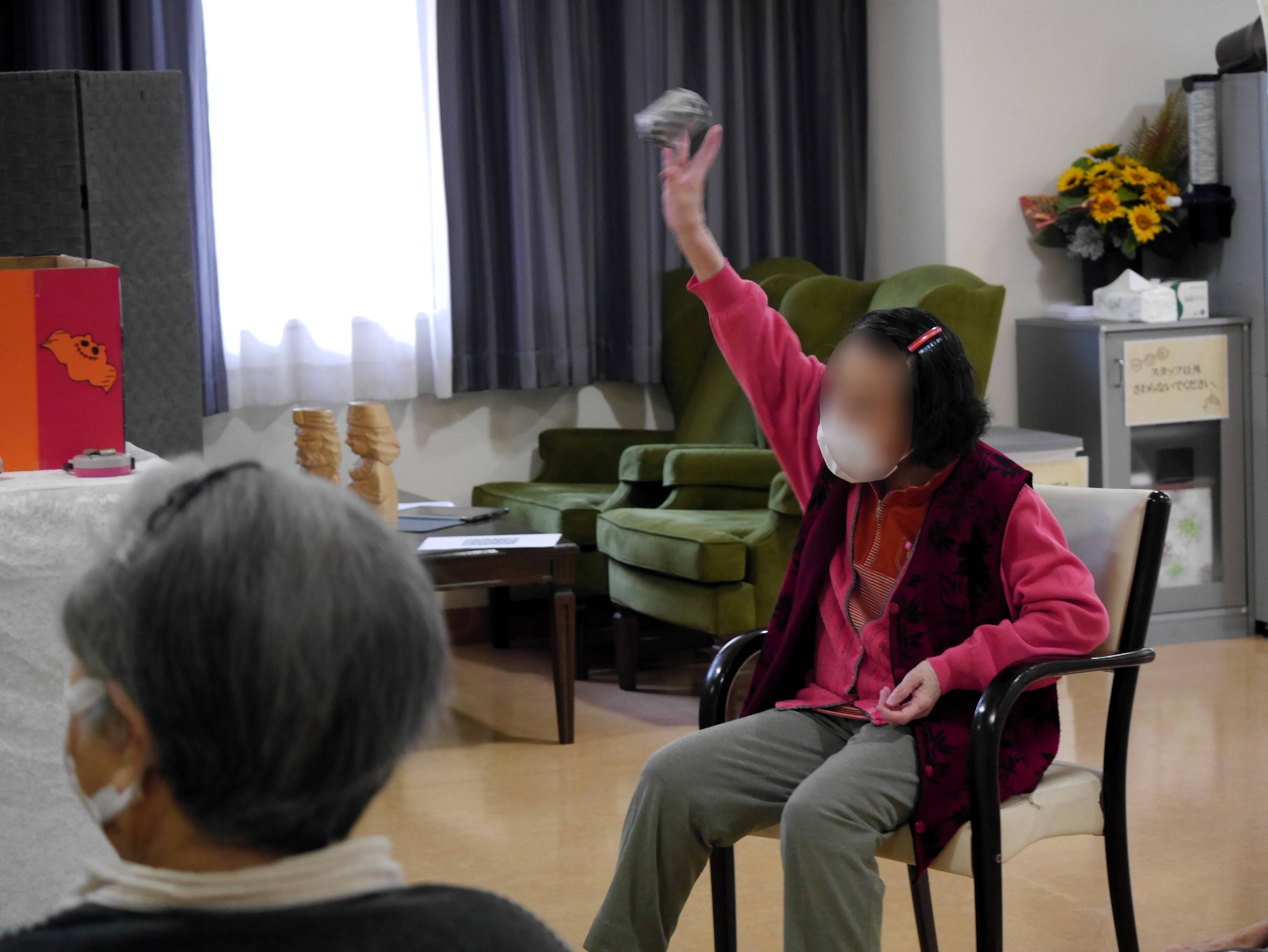 スタッフは床に落ちた玉を拾って入居者様へ渡す為