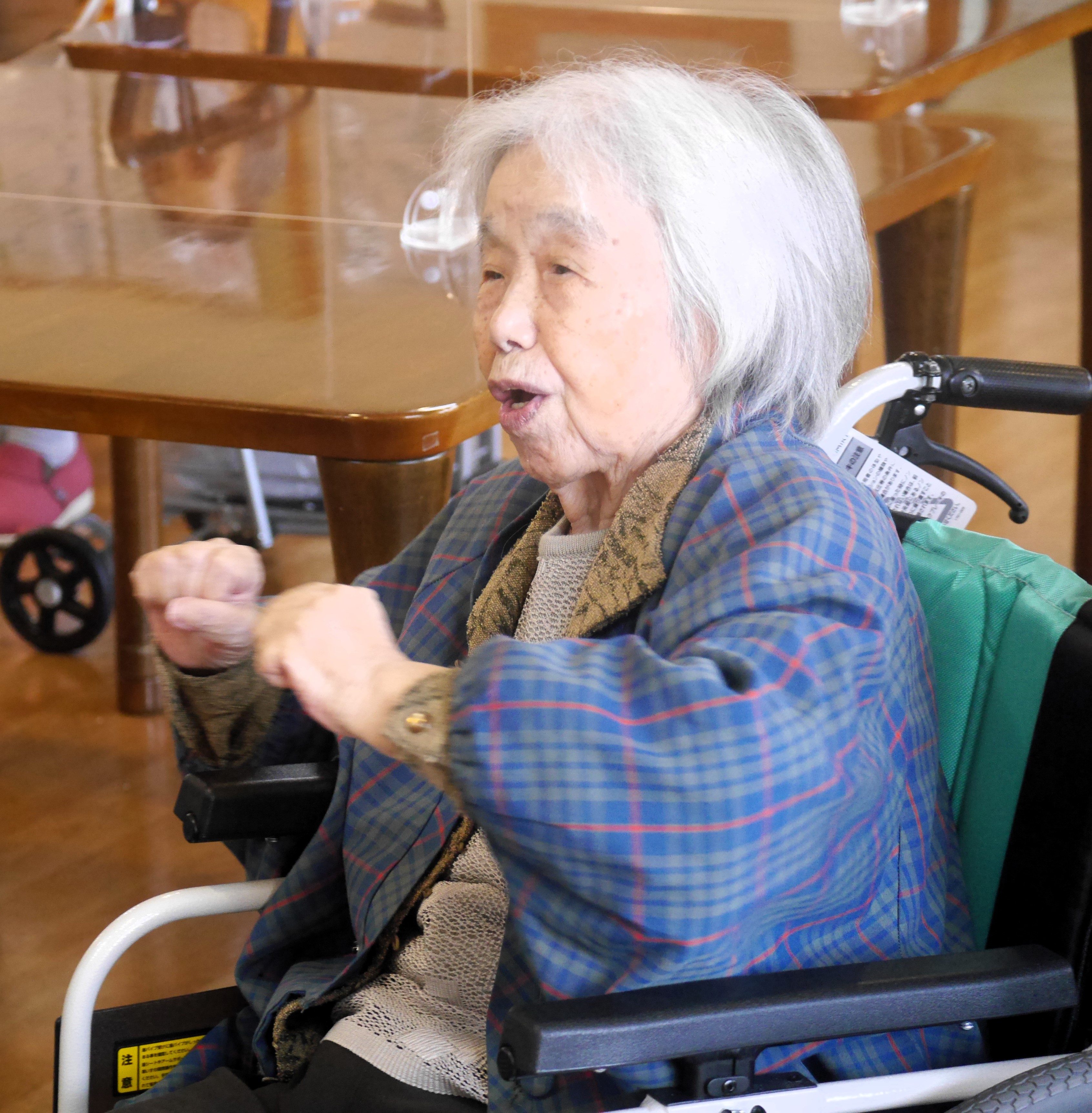 とても元気で、朝職員の足音が聞こえると