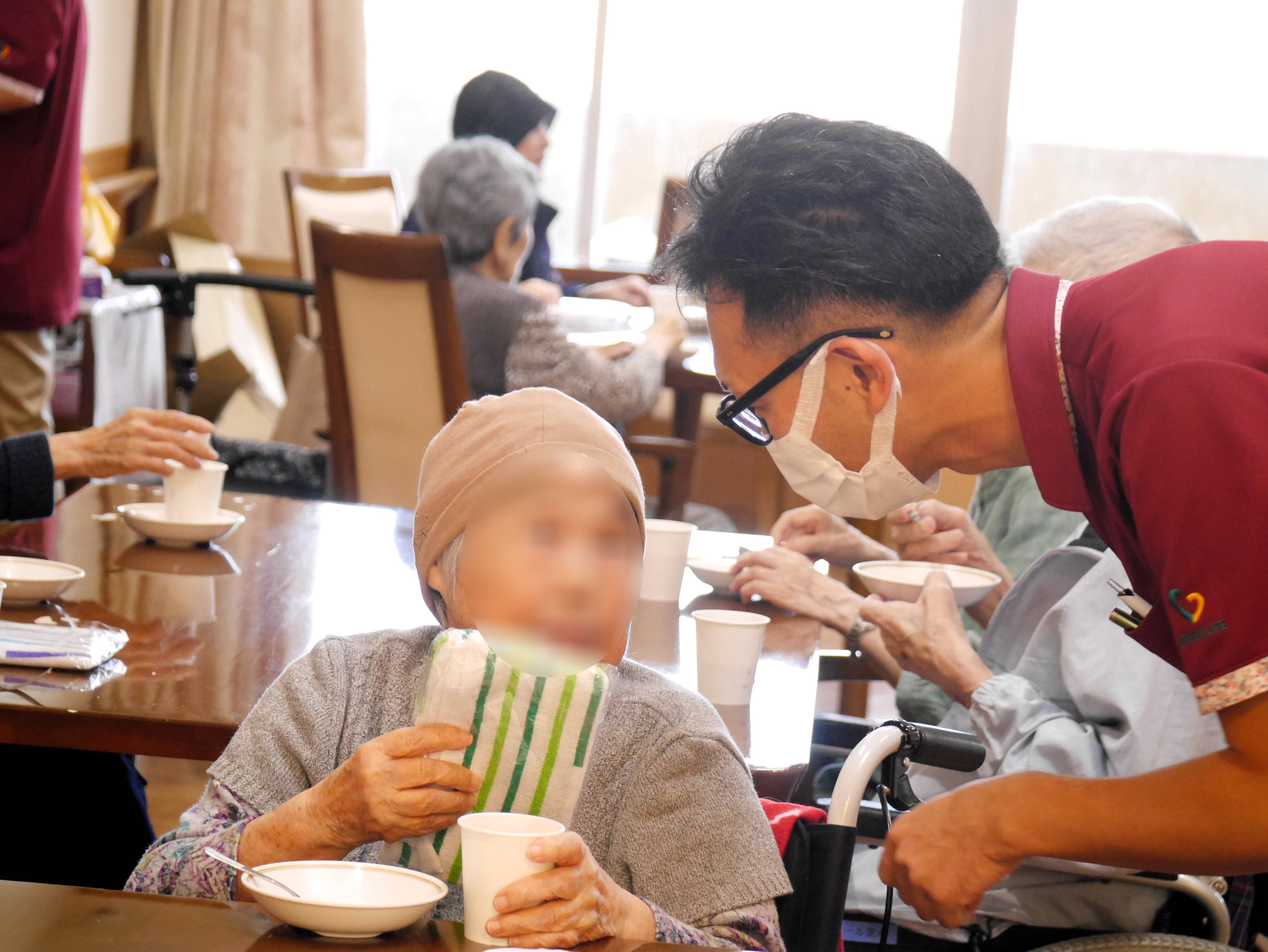 食べ終わられた入居者様に感想をお聞きすると
