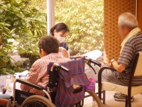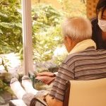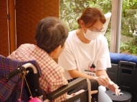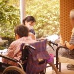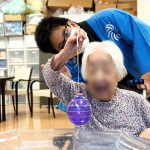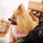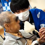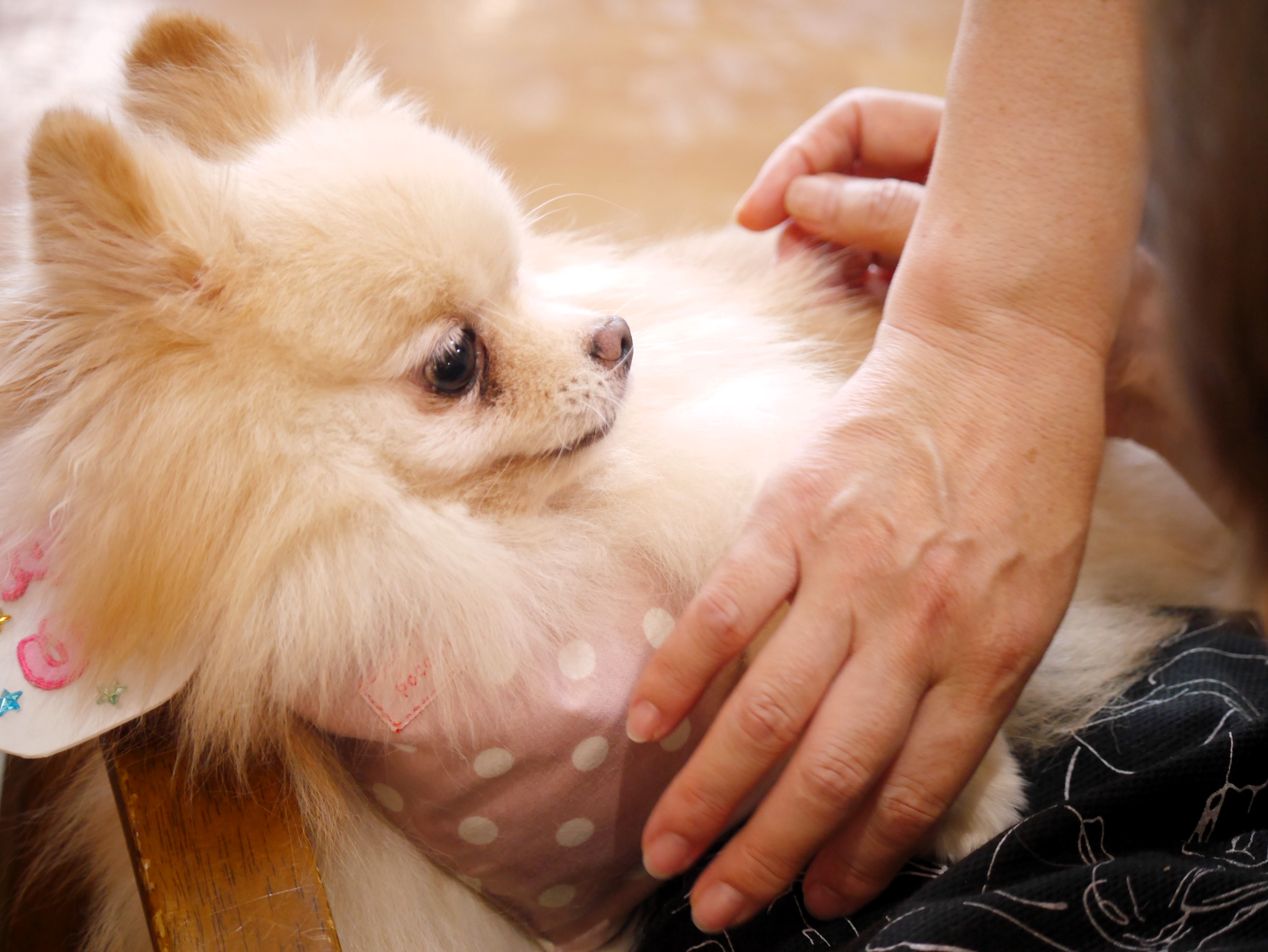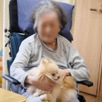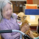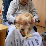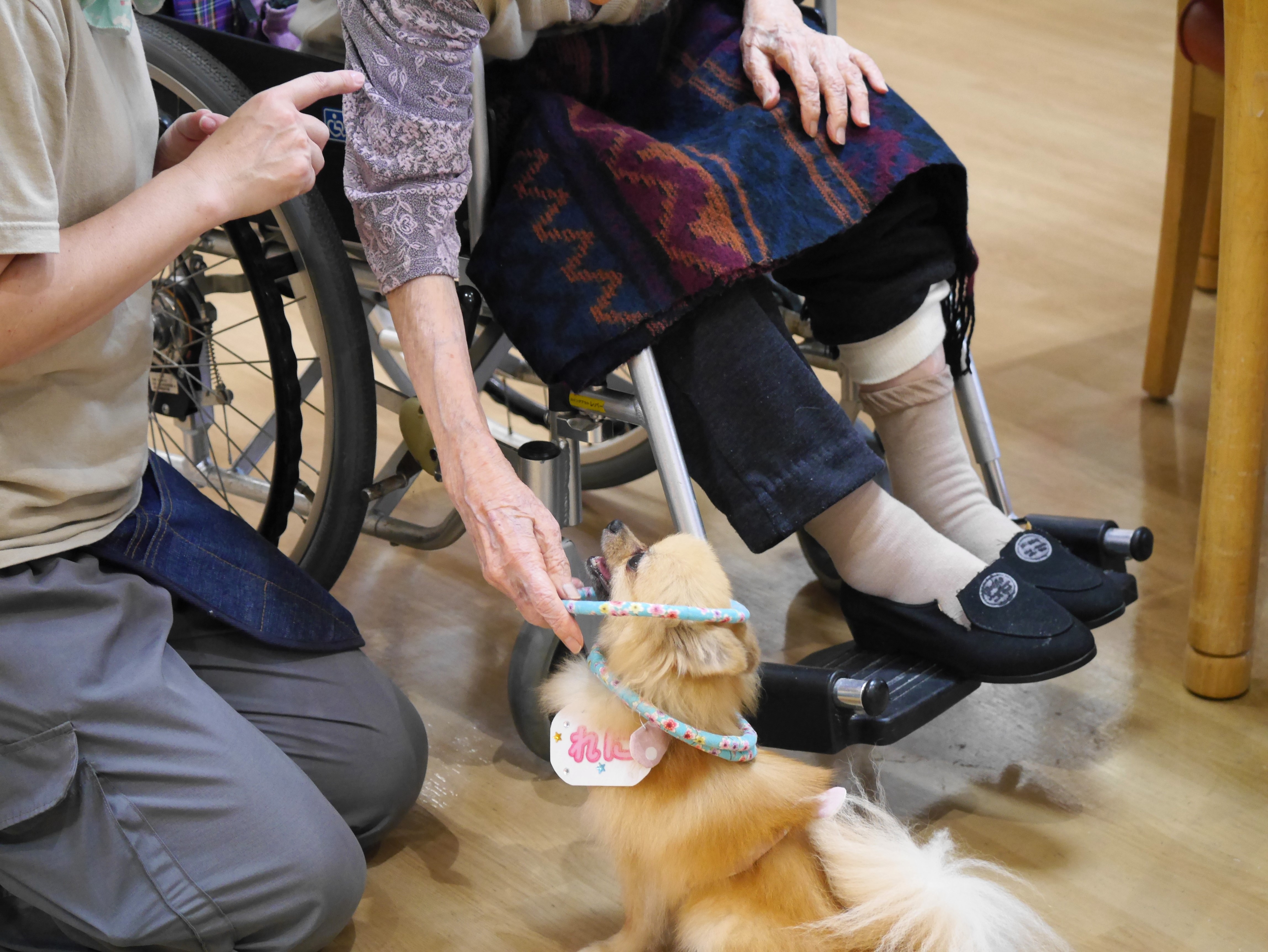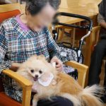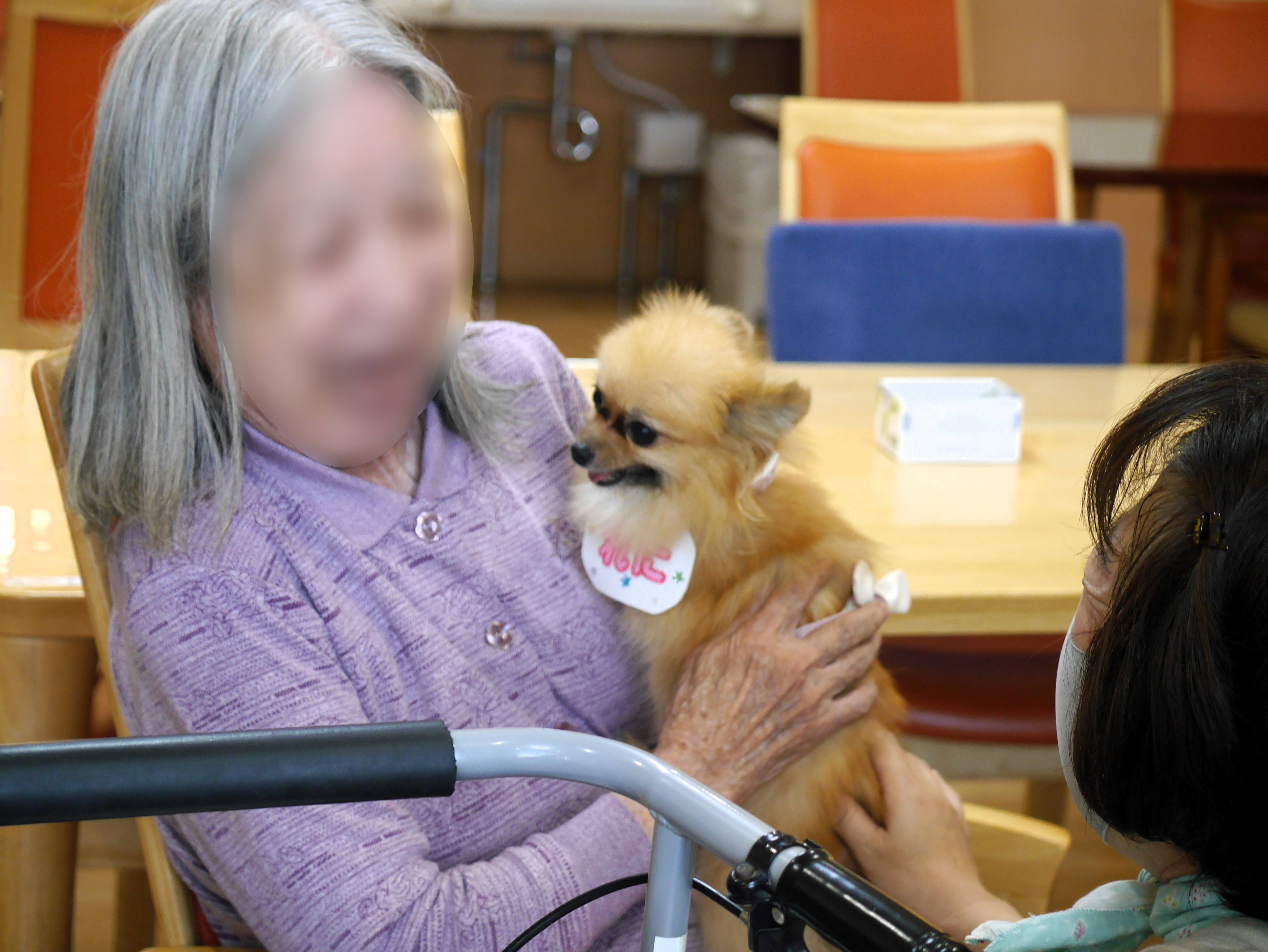 入居者様のお膝の上でニコニコの『れにちゃん』と