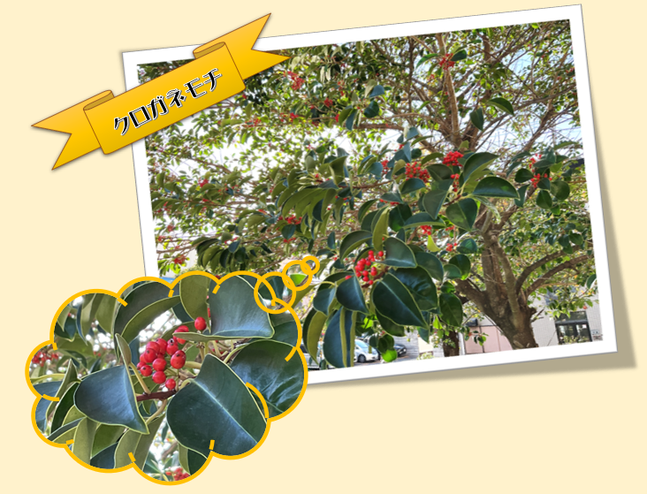 施設の庭には、桜の木の隣にクロガネモチの木が