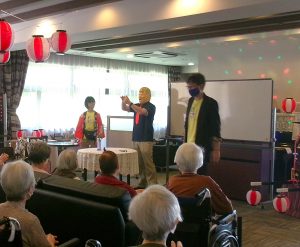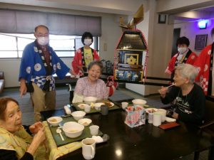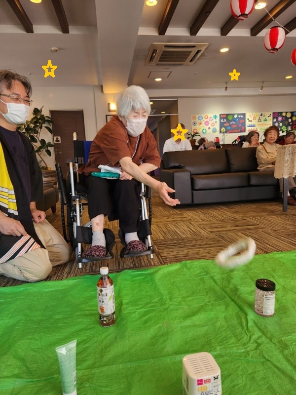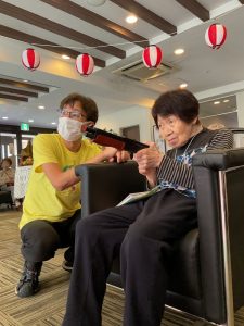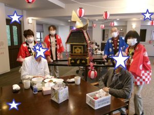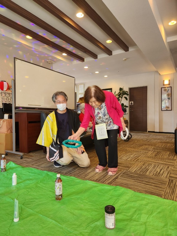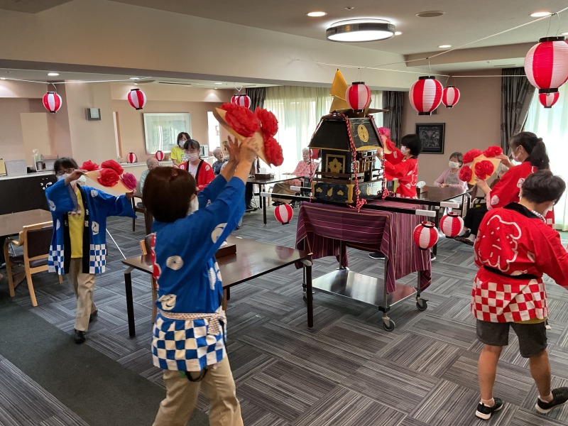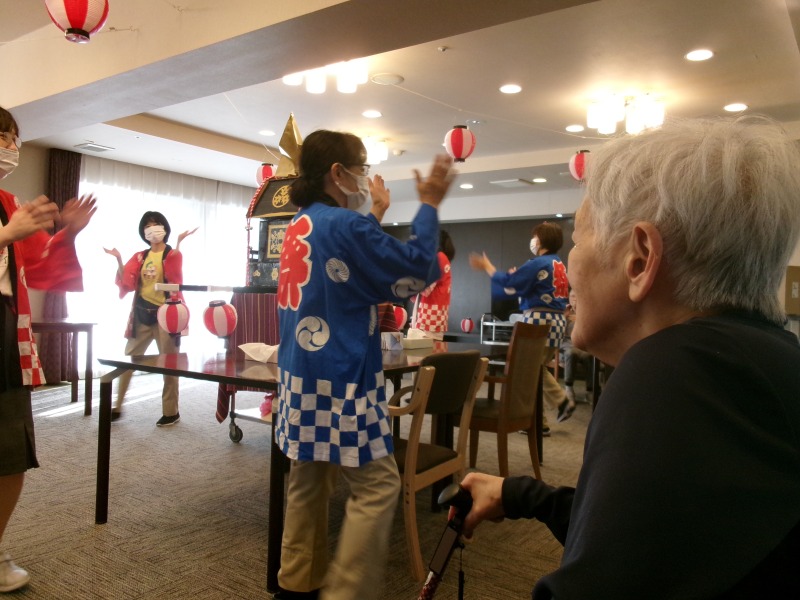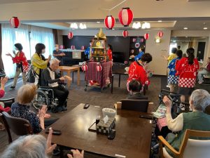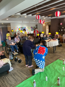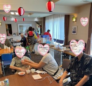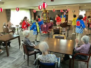 会場づくり、盆踊りや出し物の練習など、厨房含め、施設一丸となり計画したイベントでした。