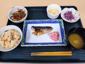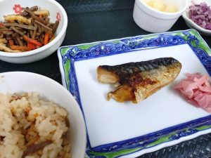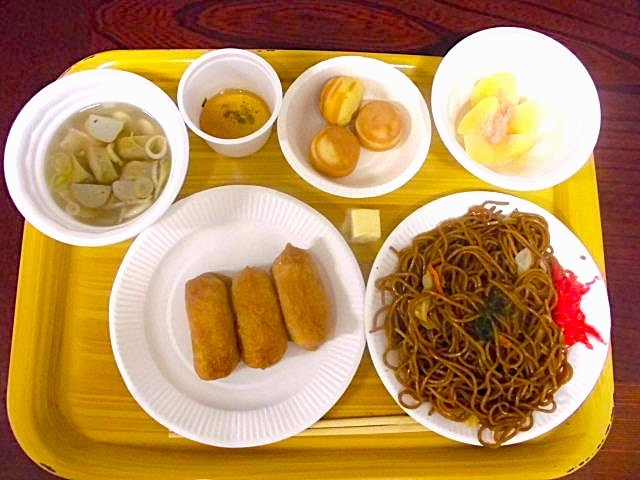 昼食は、やきそば、おいなりさん、じゃがバター、つみれ汁、ミニアメリカンドッグなどの