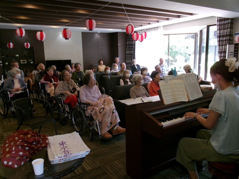 トップページ > 施設を探す > グリーンライフ船橋 関連 介護付有料老人ホーム グリーンライフ船橋 施設へのお電話は 047-318-1165 9時00分~17時30分 (365日受付) 入居に関するお問い合わせ 0120-1165-14 施設の特徴 施設概要 料金プラン 施設のアルバム «前へ2021222324次へ » 2024年08月24日 音楽療法🎵 本日は毎週土曜日のお楽しみ、音楽療法の日です♪ ザ・ワイルドワンズの「想い出の渚」、盆踊りの「東京音頭」や、 夏にちなんで山に関する歌、「山男の歌」も歌いました。 リクエストで「君といつまでも」や、「下町の太陽」なども歌い、 最後は井上陽水さんの「少年時代」です。 夏ももうすぐ終わりですね・・・👒 関連 2024年08月23日 納涼祭の準備👘 来週日曜日、グリーンライフ船橋にて納涼祭が行われます。 各階にちょうちんが飾られ、着々と準備が進んでおります。 当日のスケジュールは・・・ 9:30~ スタッフのマジックショー (2,3階の方) 10:30~ 〃 (4,5階の方) 11:30~ 昼食(お祭りメニュー)、おみこし練り歩き 13:30~ 出店(飲食)ジュース、お酒、かき氷、チョコバナナ、枝豆、カットスイカ 〃 出店(遊技場)射的、輪投げ、VR遊園地 16:00~ 花笠音頭と盆踊り と、一日中盛りだくさんの内容になっております🍧 どうぞお楽しみに✨ 関連 2024年08月21日 本日の昼食🍚 本日の昼食は、こちらです🍚 メニューは、 ・親子煮 ・揚茄子の浸し ・青梗菜和え物 ・味噌汁 ・フルーツ でした。 親子煮はやさしいお味で、揚げ茄子も油っぽくなく、むしろさっぱりとした口当たりでした。 とてもおいしかったです😊 関連 2024年08月20日 不定期開催☕伊藤珈琲店 本日、珈琲店がオープンしました☕ スタッフが店主を務めるコーヒー屋さんで、不定期開催ですが人気のお店です。 一杯ごとに心を込めて、コーヒーを淹れています。 とても美味しいコーヒーで、大変ご好評をいただいております。 ゆったりとした時間の中で、みなさん楽しくお話しされています♪ ↑ 店主兼スタッフの伊藤です✨ 次回開催もお楽しみに! 関連 2024年08月19日 理美容の日✂ 本日は、月に二回の訪問理美容「ディチャーム」さんの訪問日です。 皆さん、毎月とても楽しみにされています。 ヘアカラーをされるK様は、待ち時間に新聞や雑誌を読まれています。 O様は、カットにヘアセット、お顔そりもされています。 キレイでいることを怠らない✨ みなさまとても素敵です✨ 関連 «前へ2021222324次へ » 近隣施設のご紹介 メディス千葉浜野 介護付有料老人ホーム シーハーツ松戸 介護付有料老人ホーム シーハーツ小金原公園 介護付有料老人ホーム メディス草津 介護付有料老人ホーム
