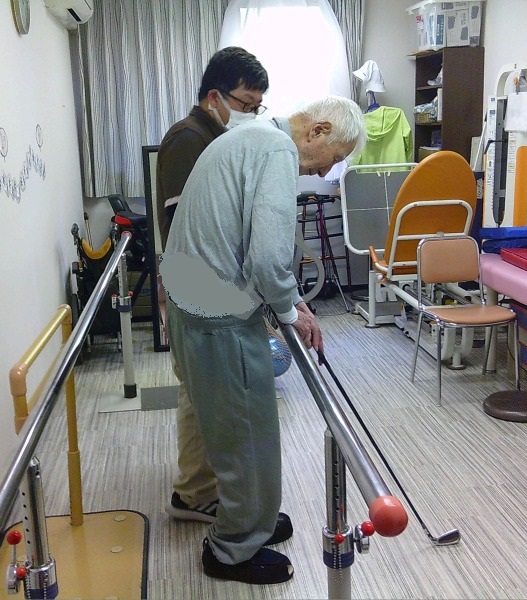 リハ室の前を通ると、ちょうどリハビリを終えようとしていた