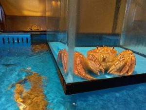 生け簀には蟹が!お出迎えありがとう。美味しく頂くね・・・。