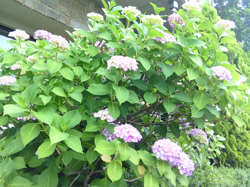 玄関にハンギングバスケットを飾っていますが、日陰でも育つ花を選んでいます。