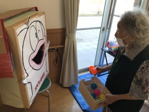 次は、おばけのQ太郎へボール投げ。