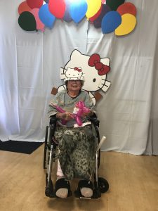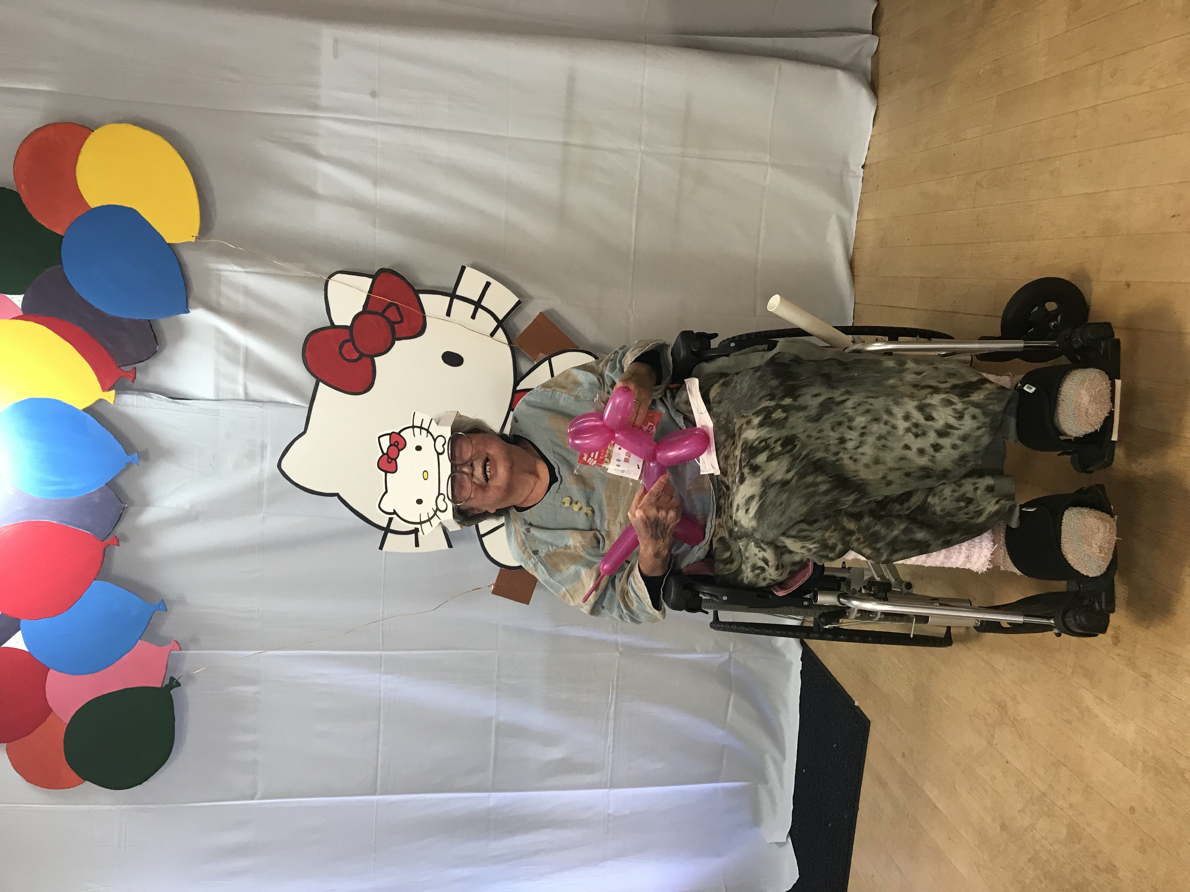 皆さんスタッフ手作りのバルーンとお面をもらい