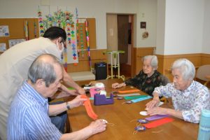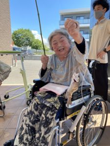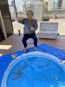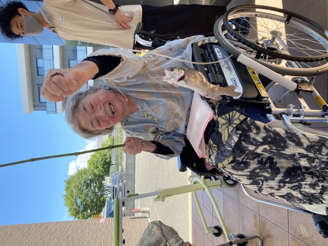 手作りの釣り竿でいざ、ニジマス釣り開始!!