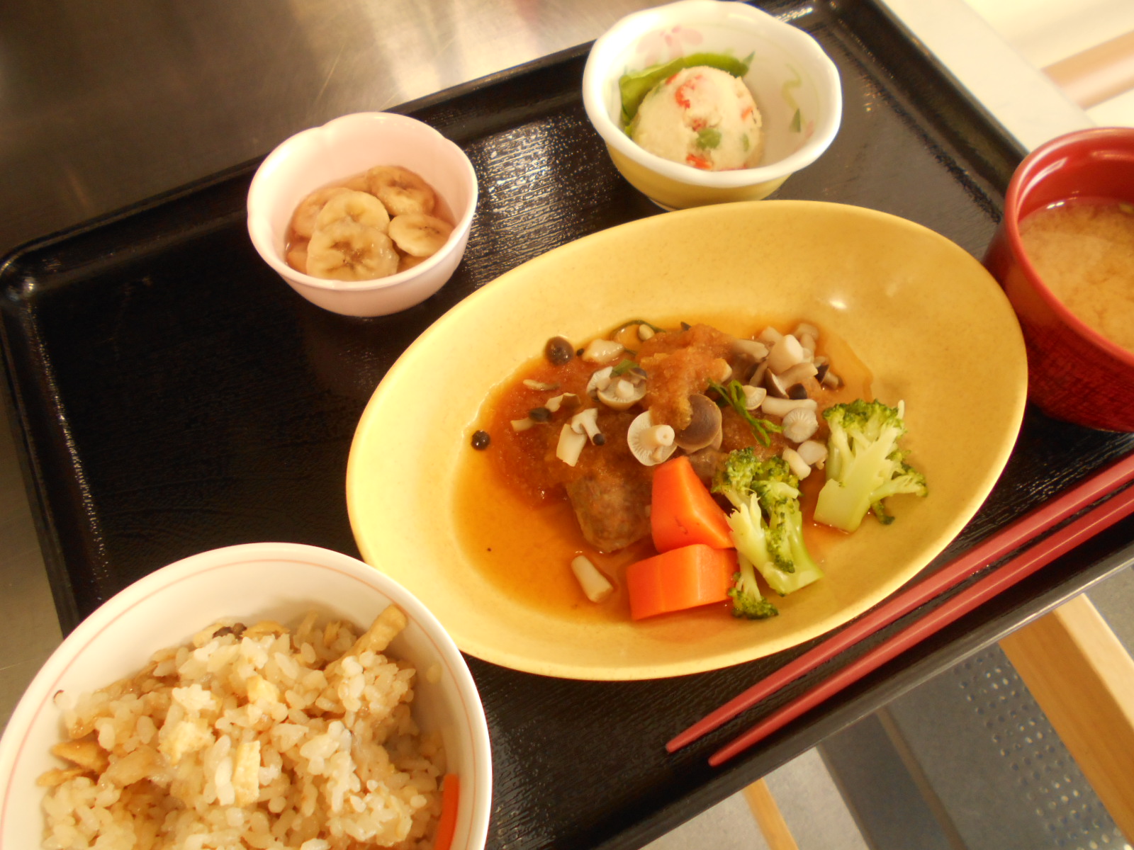 繊維たっぷりのきのこご飯・きのこハンバーグ