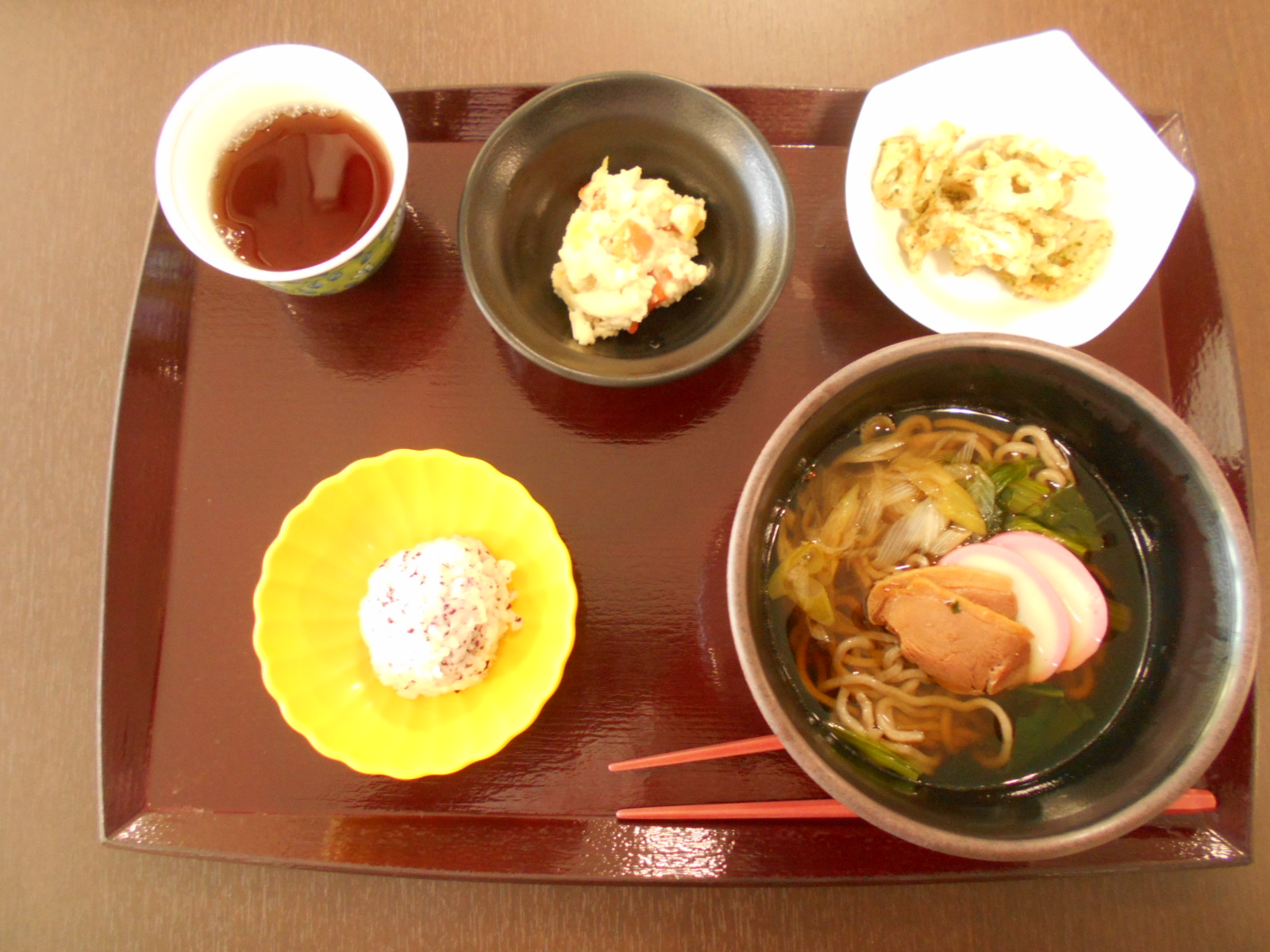 鴨そば・ごはん・竹輪の磯部揚げ・白和え