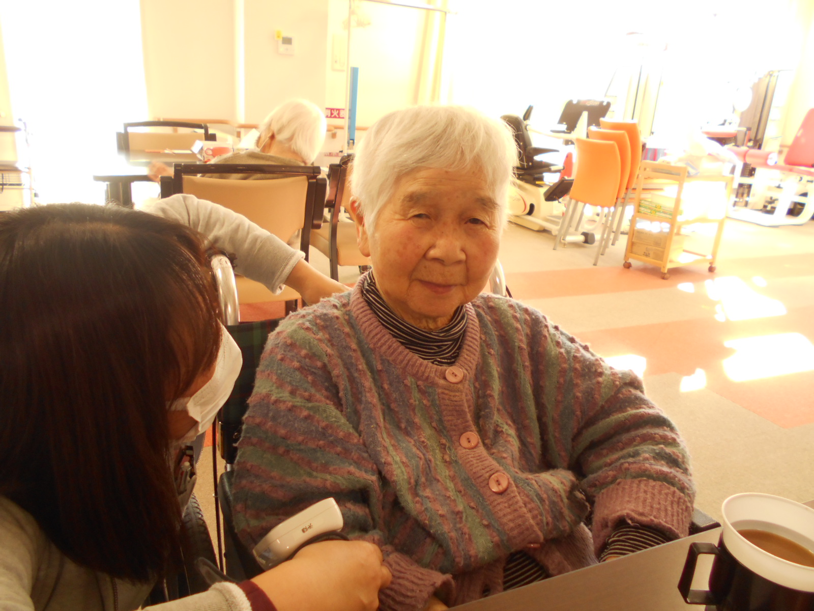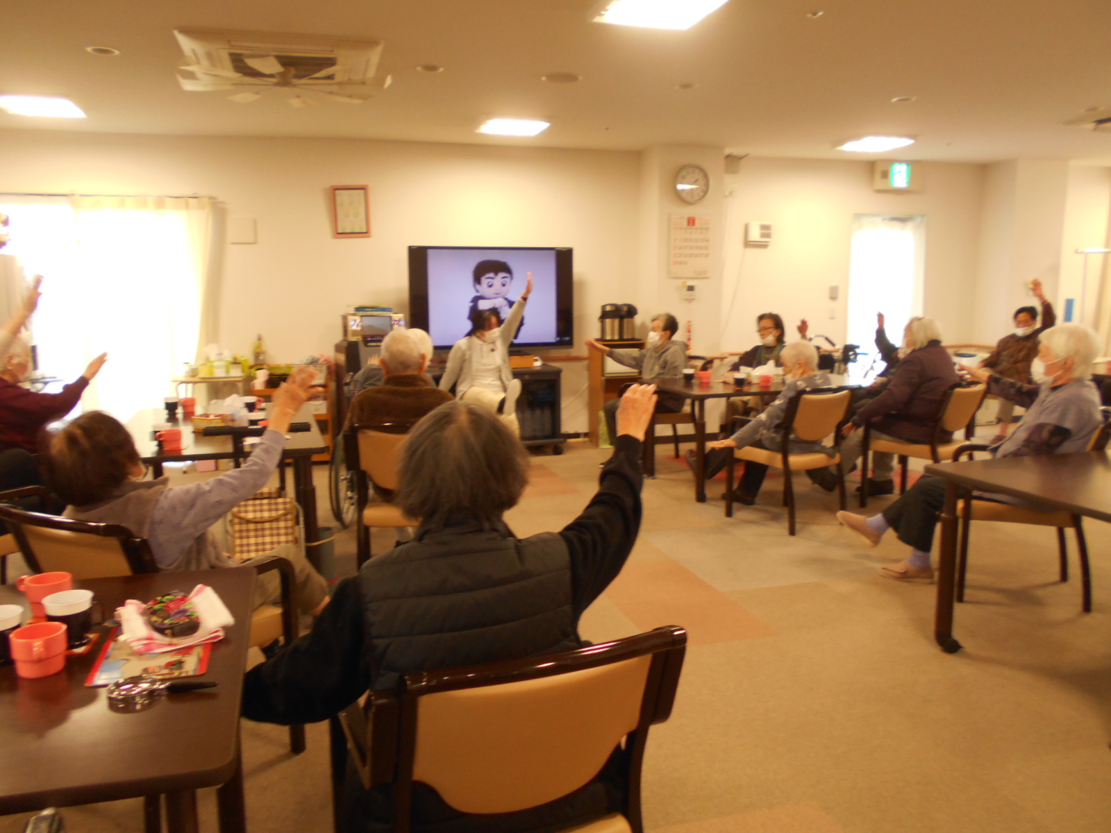 食事が終わって体操の時間です。