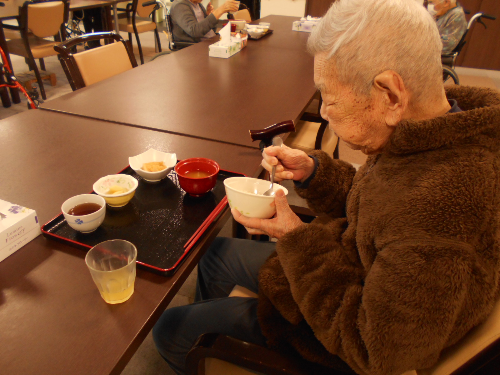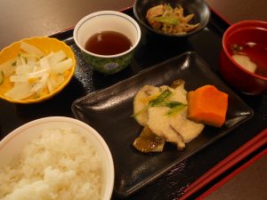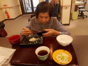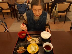 ⇓ Tさん 魚のとろろ蒸しを食べ