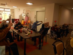 トップページ > 施設を探す > 楽リハLife高知杉井流 関連 サービス付き高齢者向け住宅デイサービス 楽リハLife高知杉井流 施設へのお電話は 088-804-0968 9時00分~17時30分 (365日受付) 入居に関するお問い合わせ 0120-1165-14 施設の特徴 施設概要 料金プラン 施設のアルバム «前へ7071727374次へ » 2022年12月09日 午後からの皆さん♪ 皆さん美味しいお昼ご飯を食べ終えて… 外の景色を眺めていたYさん(^_^)/ 「写真撮らしてくださ~い!!」と声を掛けると 「写真か!!」と元気良く手を上げて下さいました(^^)☆ ↓ デイサービスでの皆さんの様子です!! 身体を使った体操をしています! 皆さん一生懸命頑張っていますね(*^_^*) ↓ 写真からも伝わる素敵な笑顔で 楽しそうに手の運動をしているOさんです(^^)♥ ↓ 一生懸命パズルをしているTさんです! パズルって難しいですよね…(>_<) Tさんさすがです☆ 関連 2022年12月08日 今日の高知は・・・ こんにちわ。楽リハ高知杉井流です。 昨日は大雪だったとのことですが、今日の高知は、朝は3℃と冷え込みました。 昼間は16℃と温かくなりました。 昨年の12月8日は、最低気温12℃ 一昨年の12月8日は、最低気温7℃ と、最高気温は変わらなくても、 近年は温かい日だったようです。今年は長期予報通りに寒い12月になっています。 さて、今日のお昼は、 しっぽくうどん でした。寒い日に温かい汁で、野菜もたくさん入っていて 美味しかったです。 関連 2022年12月07日 今日は大雪です。 こんにちは楽リハ高知です。 今日は大雪です。二十四節気のひとつで 北風が吹いて雪が激しく降り始める頃という意味で「大雪」とされるとの事です。 高知は雪はほとんど降りませんが(^^) さて今日の昼食は ごはん・鮭のねぎ塩ソテー・かぼちゃの煮物 生姜入り豚汁・フルーツでした。 皆さんおいしく召し上がられてました。 デイサービスではパズルやお絵かきを 熱心にされてました。 パズルを終えてほっと一息です。 以上楽リハ高知でした。 関連 2022年12月06日 楽リハデイサービス(^^)/ こんにちは!!楽リハ高知です!! 少しデイサービスの様子を覗いてみましょう!! Oさん歌謡曲を観られゆっくりと過ごされていました!! 他の方パズルをされ脳トレをされていました!! 以上楽リハデイサービスでした^m^ 関連 2022年12月05日 12月5日は(^^♪ 今日は、誕生日の方がいます(^o^)丿 Oさんです。サービスの時に「私誕生日ながよ。」と、言われていました(*^_^*) 85歳のおめでとうございます(*^_^*) 12月は、スタッフの私を含めて誕生日が多いようです(^o^)丿 親に感謝をしています。 生まれた話を、母親から聞いた事を思いだします(>_<) 関連 «前へ7071727374次へ » 近隣施設のご紹介 はぴね周南 グループホーム はぴね防府 住宅型有料老人ホーム はぴね福山 介護付有料老人ホーム はぴね広島安佐 グループホーム